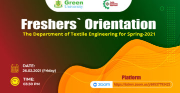 It is our great pleasure to inform you that the Department of Textile Engineering is going to organize freshers’ orientation program for Spring-2021 semester on 26.02.2021 (Friday) at 03:30 PM via Zoom platform.